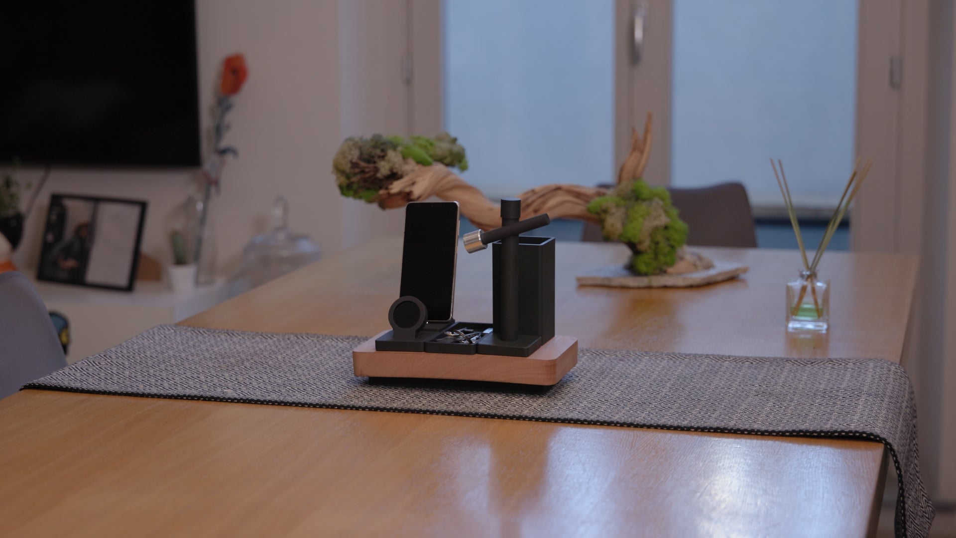 Built around a handcrafted wooden base, Modulo adapts to your space — not the other way around.